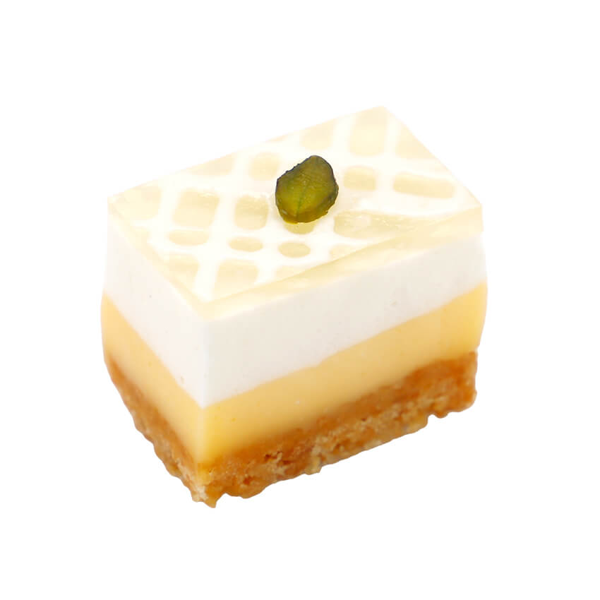 チョコレートのコクを楽しむフォレノワールとは対照的に、白く軽やかな見た目ときゅっと引き締まるレモンの酸味が印象的なスイーツです。